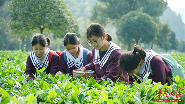 茶园里,同学们在指尖跃动间,悟茶农辛劳,承文明根由,在实践中收成对传统与劳作的两层认知。